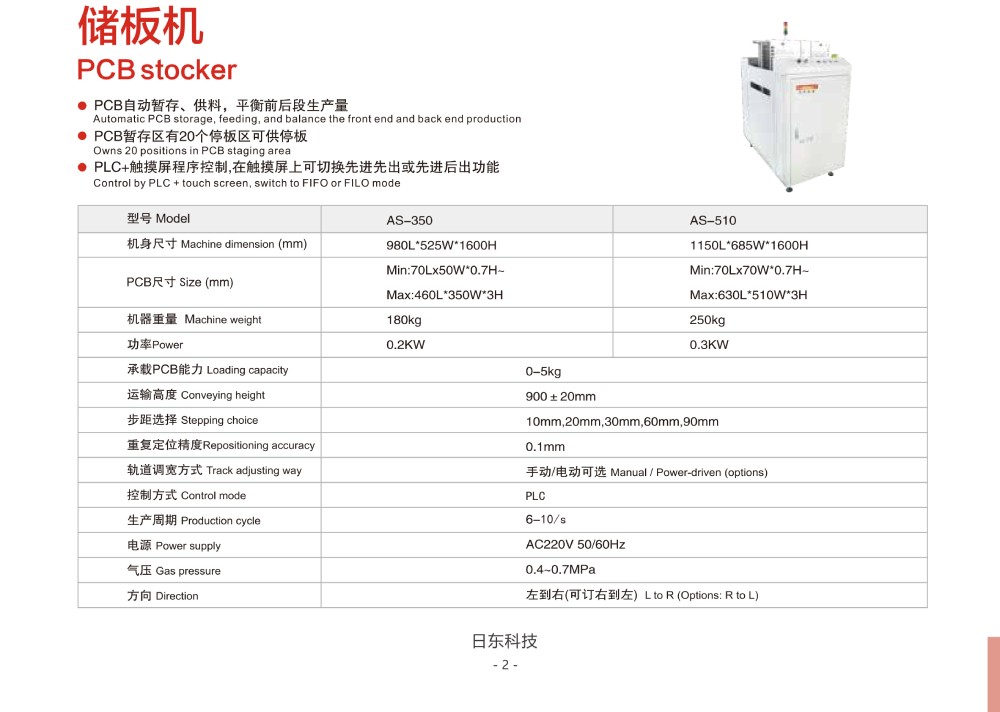 PCB儲板機介紹:PCB自動暫存、供料,平衡前后段生產量;PCB暫存區(qū)有20個停板區(qū)可供停板;PLC+觸摸屏程序控制,在觸摸屏上可切換先進先出或先進后出功能。