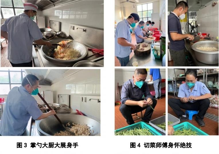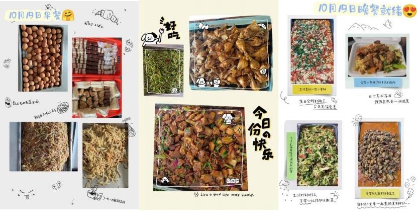 秉承自愿原則,在做好個人疫情防護的前提下,住宿員工自告奮勇投身于疫情防控工作當中,組成配餐小組在疫情防控工作專班的帶領(lǐng)下各顯神通,在封控期間上演了一場“舌尖上的日東”。配餐小組分工明確、配合默契,洗菜的洗菜、切菜的切菜、掌勺的掌勺、打包的打包,流水線式的作業(yè),行云流水、一氣呵成。鐵鍬般的大鏟子在蘇強和楊久鵬大廚的手中上下翻飛,電光火石間一道道美味出鍋了。配菜師傅刀工了得,一頓操作后,片是片、塊是塊、條是條,整齊碼在菜案子上,看來都沒少做飯呀!打包師傅手中的飯鏟就是稱,菜品和米飯分配的那叫一個均勻,松軟可口的大米飯乖乖地臥倒在飯盒里。讓我們一塊來看看各位大廚為大家?guī)砹四男┟牢栋桑袌D有真相,嘎嘎香!