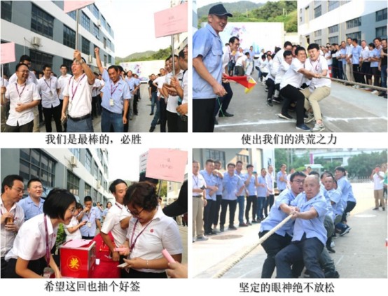 歡呼聲突然伴隨著哨聲響起,裁判宣布生產(chǎn)隊(duì)取得了第一輪的勝利。售后與人力行政聯(lián)隊(duì)力戰(zhàn)銷售與財(cái)務(wù)聯(lián)隊(duì)、供應(yīng)鏈聯(lián)隊(duì),拿下兩連勝的佳績(jī),沖入決賽,與勁敵生產(chǎn)隊(duì)正式PK。挑完邊,兩邊的選手都已在欲欲躍試,顯得迫不及待要與對(duì)手開始撕殺分個(gè)高下,繩子被雙方拽得緊緊地一動(dòng)不動(dòng),哨響旗落,加油聲此起彼伏,隊(duì)員們咬緊牙,臉崩得通紅,不敢放松一下。“贏了”,一邊的人群突然歡呼起來(lái),售后與人力行政奪得拔河比賽的最終勝利!