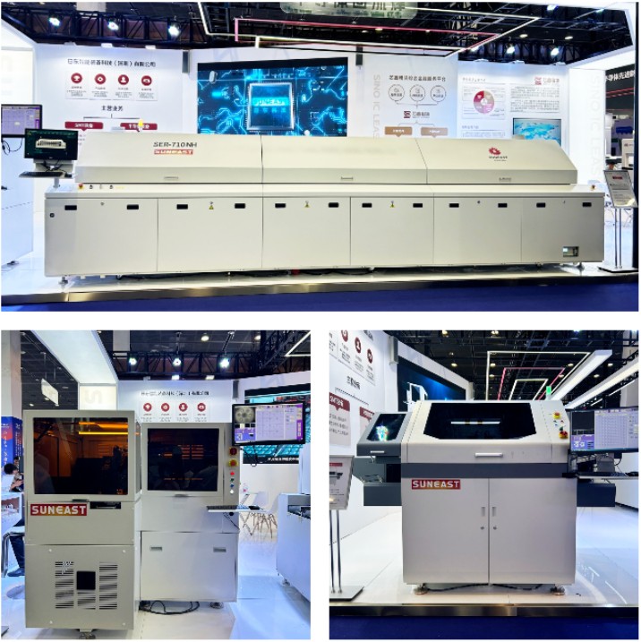 本次展會日東科技展出了半導體回流焊和兩款新品IC貼合機。日東科技在半導體封裝設備領域不斷開拓,研發的高精度固晶貼合設備“IC貼合機”成功應用于SIP封裝、Memory Stack Die (存儲芯片堆疊),CMOS,MEMS等工藝,在高精度貼裝領域實現國產替代。