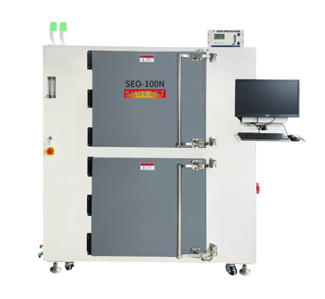 半導體充氮烤箱SEO-100N通用性強,具有高穩定性和高性能,采用高容量水平空氣再循環系統,采用專有的腔室結構和密封技術,具有出色的氣密性和溫度均勻性,滿足半導體產品高性能要求。此烤箱適用于固化半導體晶圓、IC封裝(銅基板,銀膠,硅膠,環氧樹脂)、玻璃基板等產品烘烤。