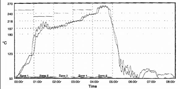 2.在回流焊爐中傳送帶在周而復(fù)使傳送產(chǎn)品進行回流焊的一起,也成為個散熱體系,此外在加熱部分的邊際與中心散熱條件不同,邊際般溫度偏低,爐內(nèi)除各溫區(qū)溫度要求不同外,同載面的溫度也差異。