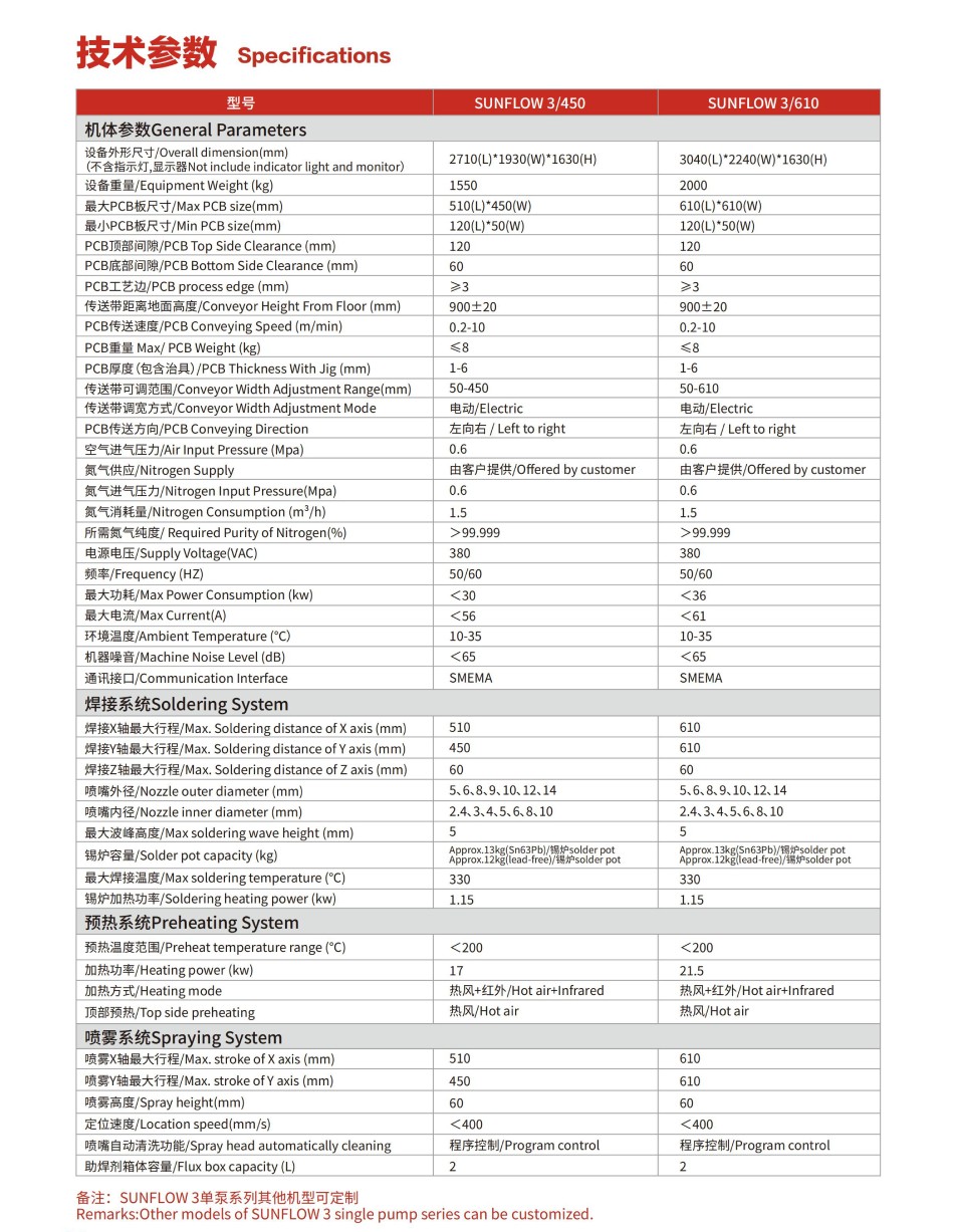 備注:SUNFLOW3單泵系列其他機型可定制